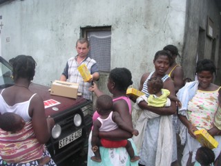 A manhã não começou da melhor maneira: o filtro de gasóleo que tínhamos trazido ontem para o jipe avariado não serviu, teríamos de ir trocá-lo hoje à tarde. Partimos só com um dos jipes para Iô Grande. À chegada disseram-nos que não havia ninguém para a consulta. Contudo, trouxéramos papas infantis para distribuir, pelo que pedimos que reunissem as mães com crianças entre os seis meses e dois anos de idade. Como já tinha dito, Iô Grande é uma das comunidades (senão mesmo a comunidade) mais pobres do distrito. Estas papas vão permitir que estas crianças reponham algumas reservas de calorias e proteínas. No final da distribuição já se tinham reunido alguns doentes para a consulta, acabámos por ver sete pessoas.